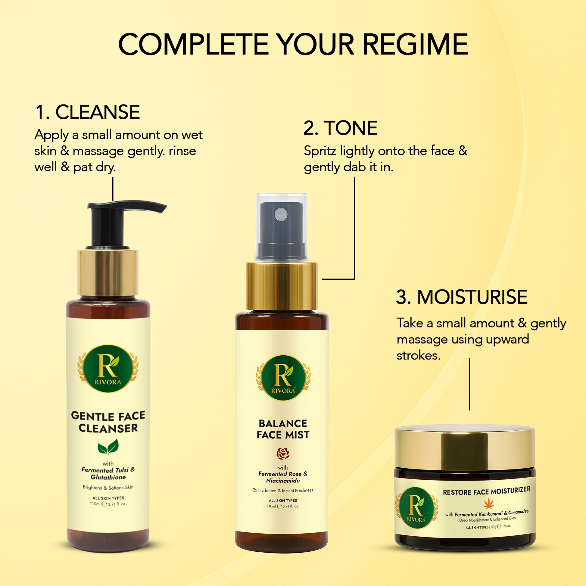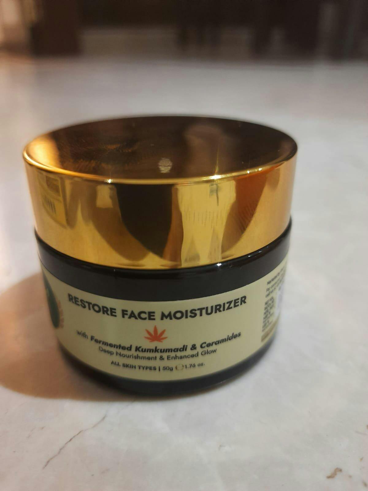 Powered by Fermented Kumkumadi, Manjistha, Ceramides, and Turmeric, this nourishing moisturizer restores your skin's glow from within. Its lightweight, non-sticky texture melts effortlessly into the skin, locking in moisture while strengthening the barrier for lasting softness and radiance.